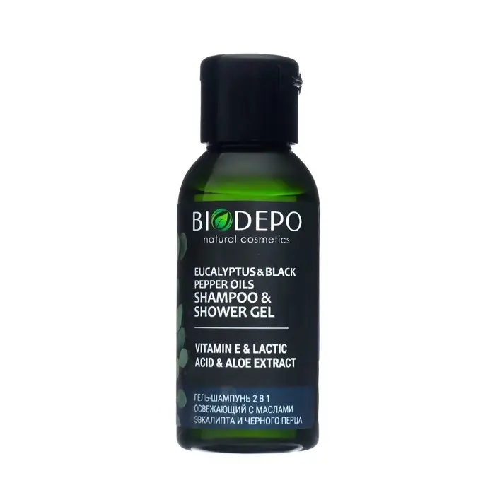 Гель и шампунь для душа Biodepo с эфирными маслами эвкалипта и черного перца 50 мл