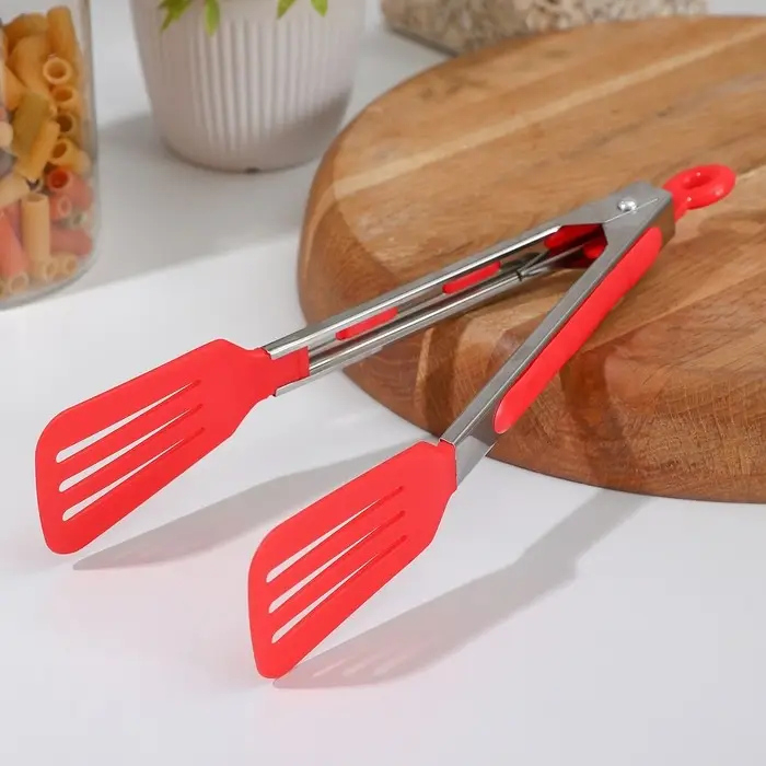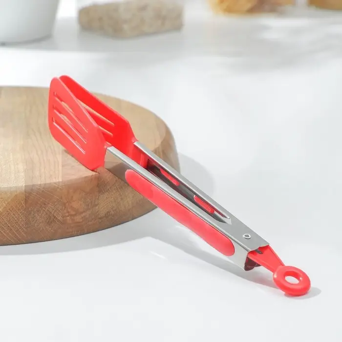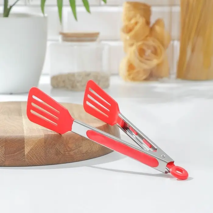 Щипцы кулинарные Доляна «Лопатка», 25×5 см, цвет красный