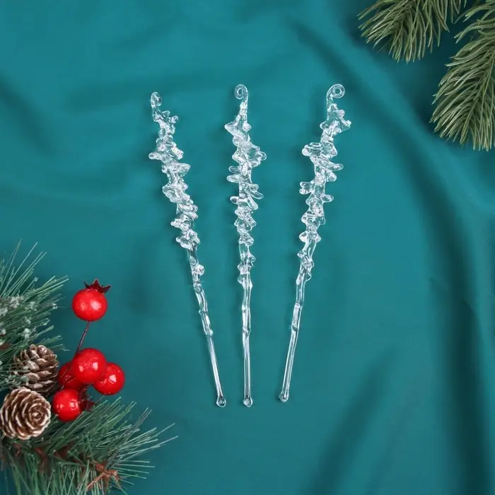 Набор ёлочных игрушек 4 шт. «Зимнее волшебство. Сосулька с капелькам» пластик, 14.5×1 см, прозрачный