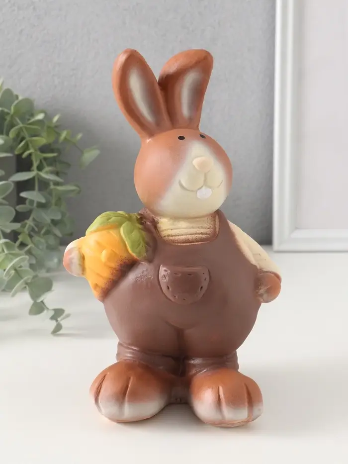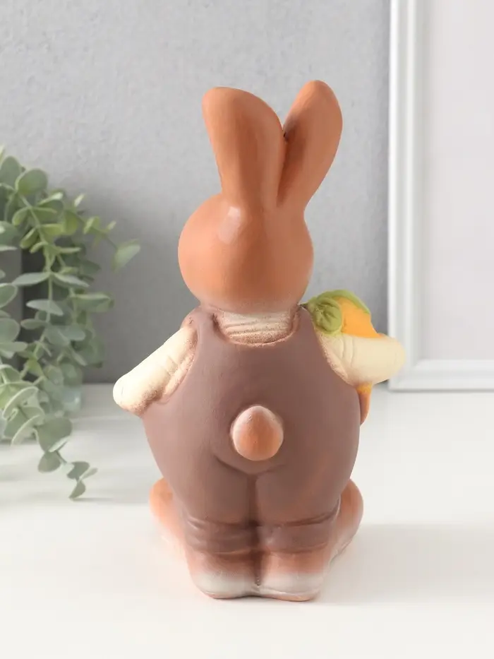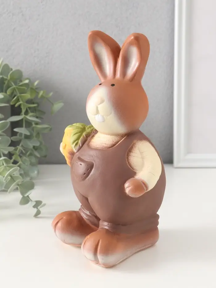 Фигурка (гипс) Кролик-фермер Кофе шоколад, 20,5х12х11 см