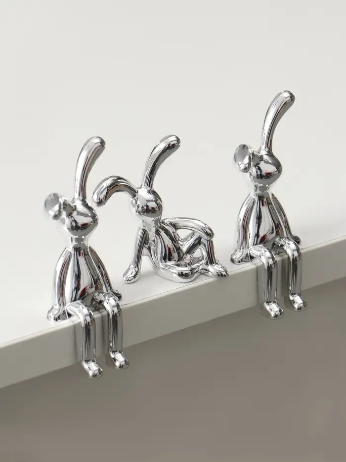 Сувенир пластик "Длинноухие зайцы" серебро набор 3 шт 3х8,7х4,4 см 2,5х5,5х5,7 см