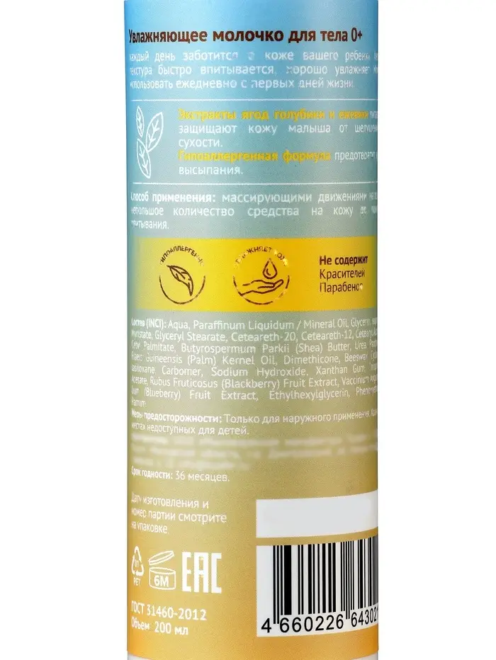 Молочко для тела детское "До Луны и обратно" увлажняющее, 200 мл