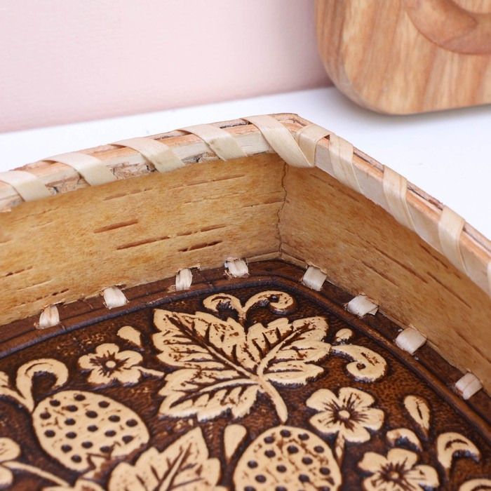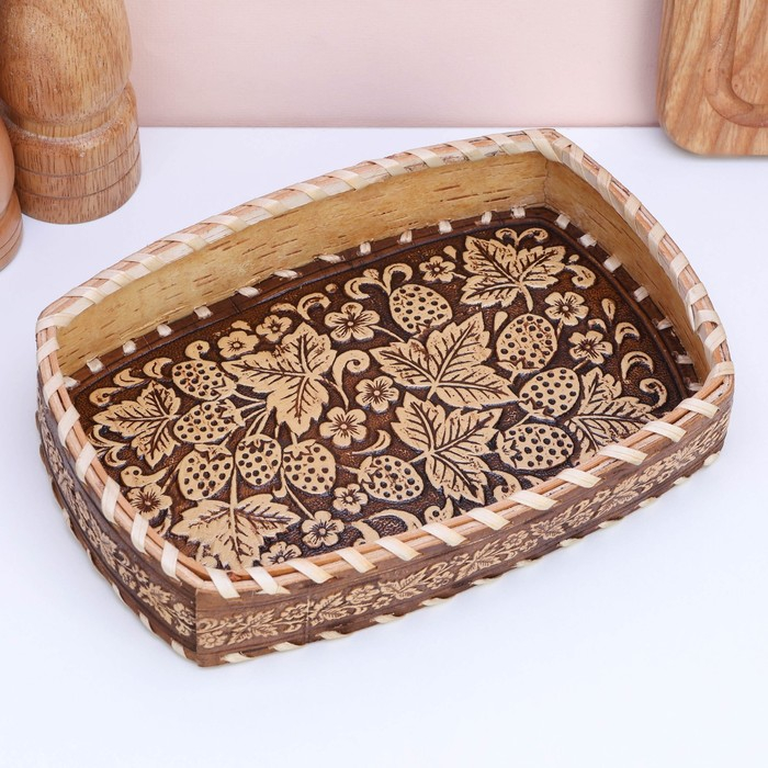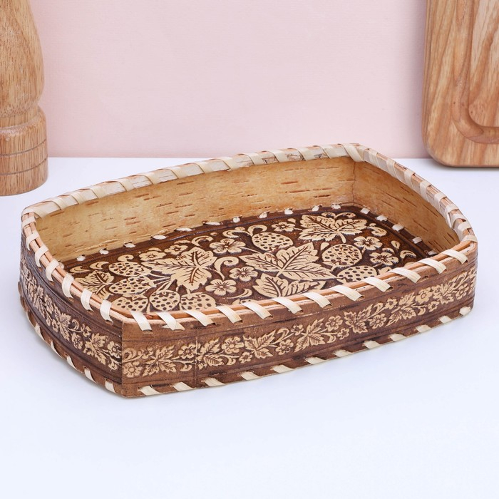 Сухарница «Ягодки», прямоугольная, 14×21×4 см, береста