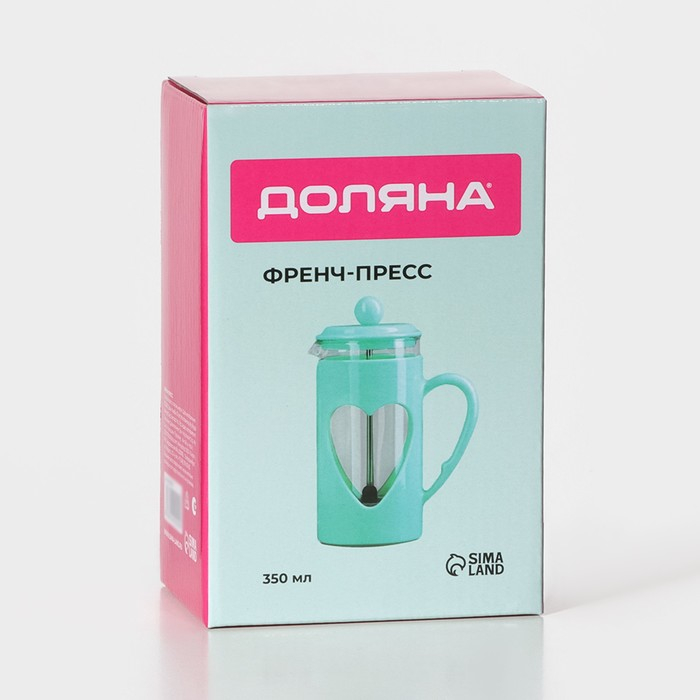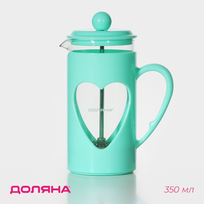 Чайник заварочный френч - пресс Доляна «Комплимент», 350 мл, стекло, цвет бирюзовый