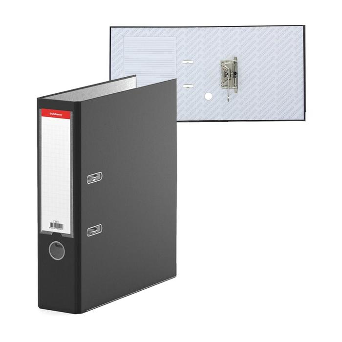 Папка-регистратор А4, 70 мм, ErichKrause, Business, собранная, карман на корешок, металлический кант, вместимость 450 листов, чёрная