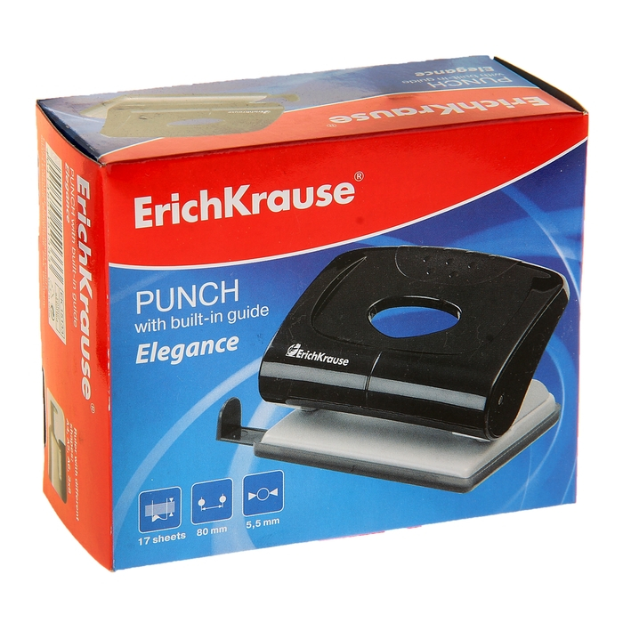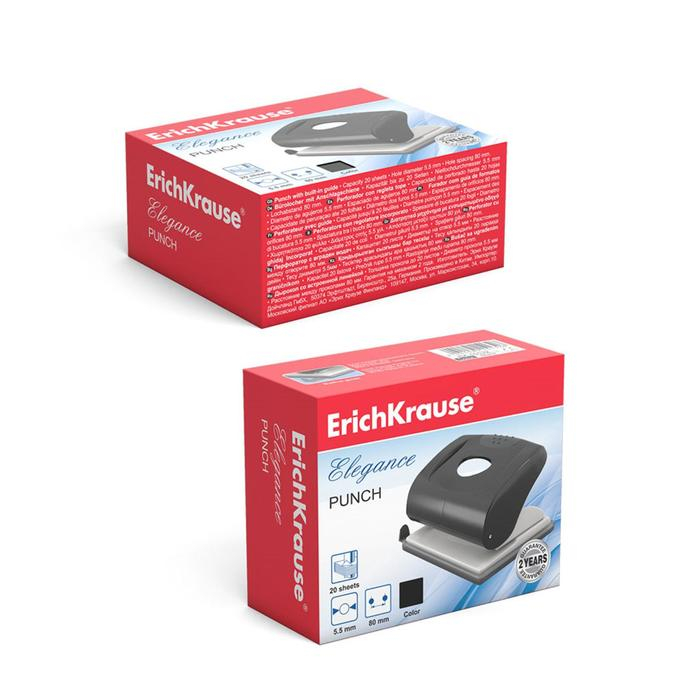 Дырокол ErichKrause Elegance, до 20 листов, диаметр прокола 5.5 мм, расстояние между проколами 80 мм, МИКС