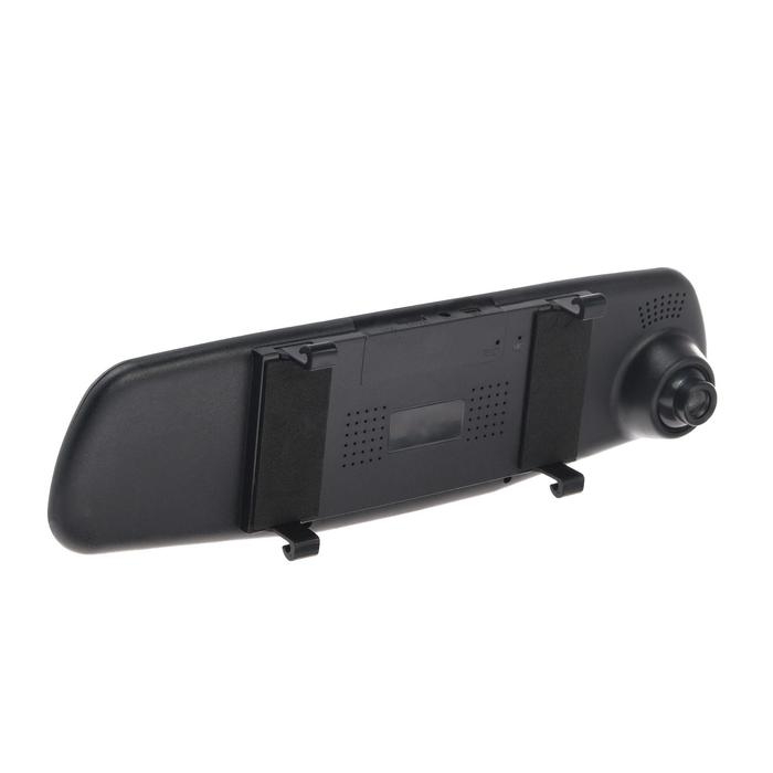 Необычное и удобное устройство 2 в 1 выполняет функции регистратора и зеркала заднего вида, благодаря чему экономит место на лобовом стекле автомобиля. Имеет встроенный датчик удара, благодаря которому фиксирует изменения динамики движения автомобиля, такие как резкое торможение, поворот, столкновение, и сохраняет эти данные в защищённой от перезаписи папке. Датчик движения определит активность какого-либо объекта в радиусе действия, после чего видеорегистратор автоматически начнёт работу.