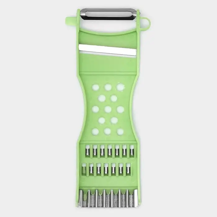 Овощечистка с тёркой и шинковкой Доляна, 17 см, зелёная