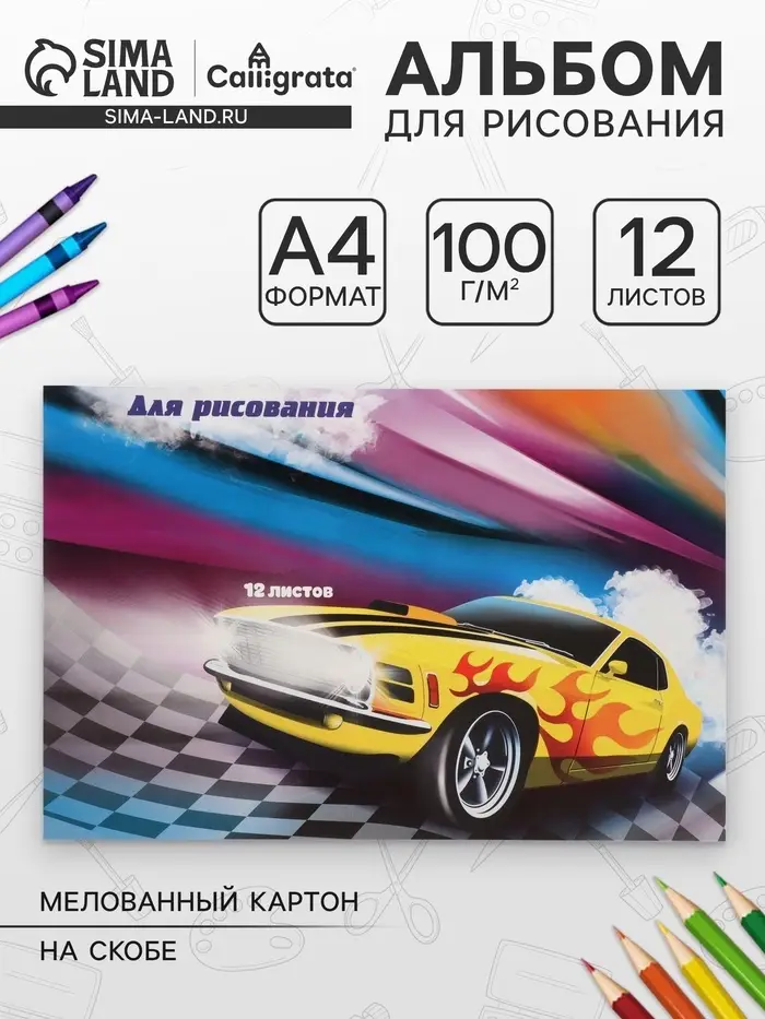 Альбом для рисования Calligrata А4, 12 листов на скрепке, обложка мелованный картон, МИКС