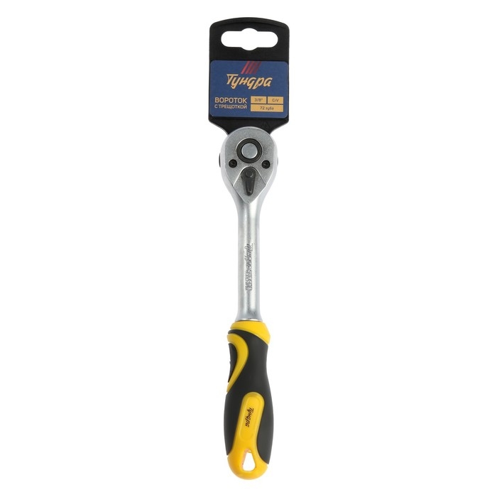 Вороток с трещоткой ТУНДРА, CrV, квадрат 3/8", 2К рукоятка, 72 зубца, 200 мм
