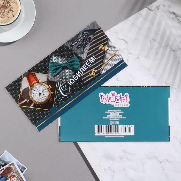 Конверт для денег "С Юбилеем!" часы, бабочка, 16х8 см