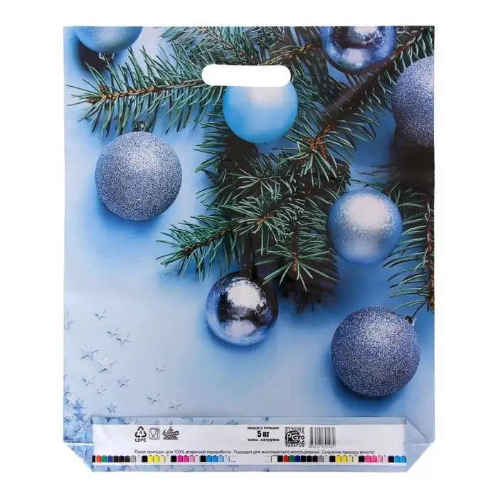 Пакет полиэтиленовый с вырубной ручкой новогодний - это отличный способ добавить праздничного настроения любому подарку.