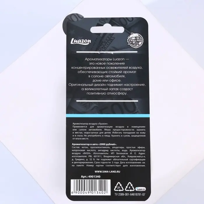 Ароматизатор в авто «2000 рублей», аромат: черный лед