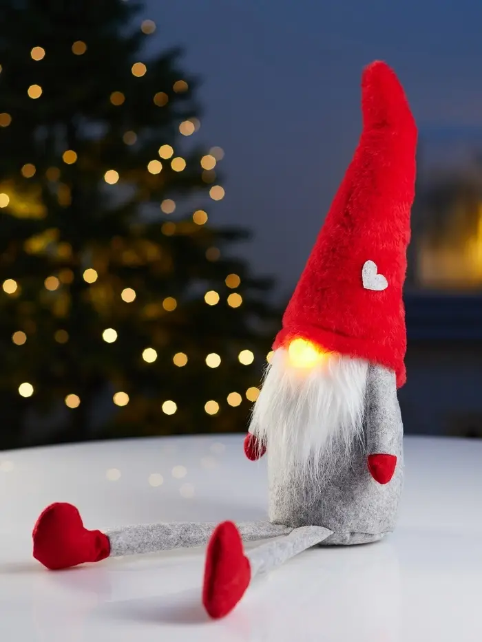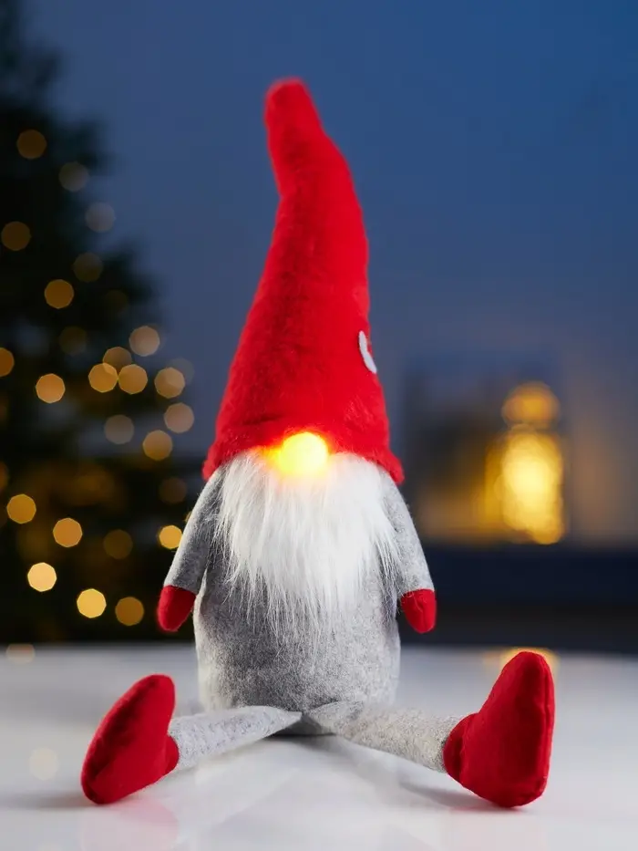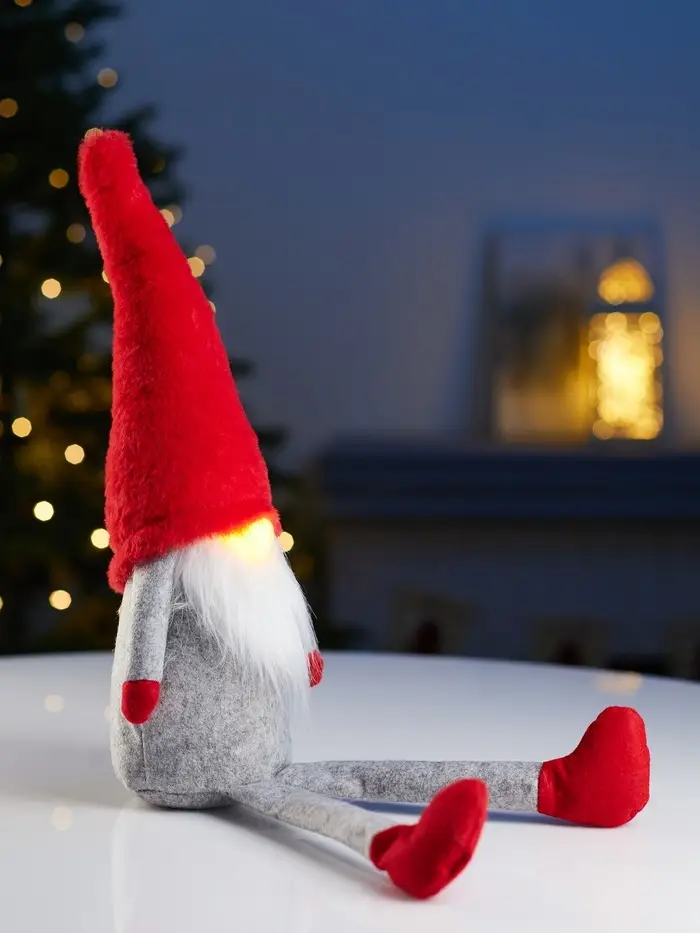 Фигура текстиль «Гномик в красной шапке» 60 см, 1 LED, LR1130х3 (в компл.), Т/БЕЛЫЙ