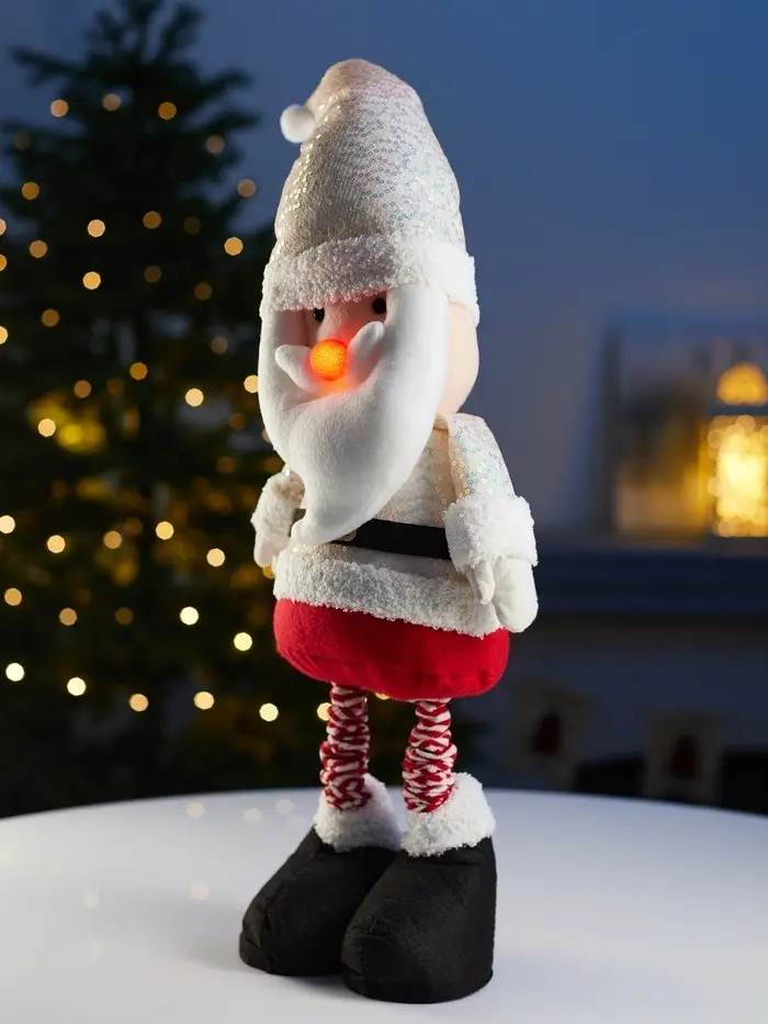 Фигура текстиль «Дед Мороз» 55-84 см, телеск-е ножки, 1LED, LR1130х3 (в компл.), Т/БЕЛЫЙ