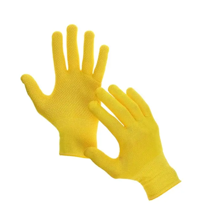 Перчатки рабочие, х/б, с нейлоновой нитью, с ПВХ точками, размер 9, жёлтые, Greengo