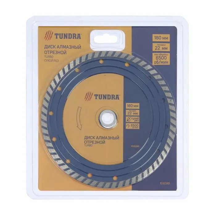 Диск алмазный отрезной ТУНДРА, TURBO, сухой рез, 180 х 22 мм