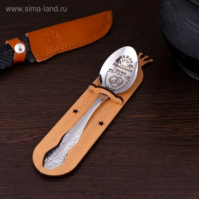 Ложка чайная с гравировкой «Любимого мужа», h=14см.