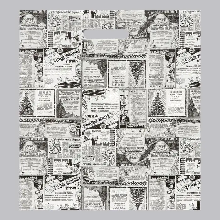 Пакет "Новогодняя газета", полиэтиленовый с вырубной ручкой, серая, 37х47 см.