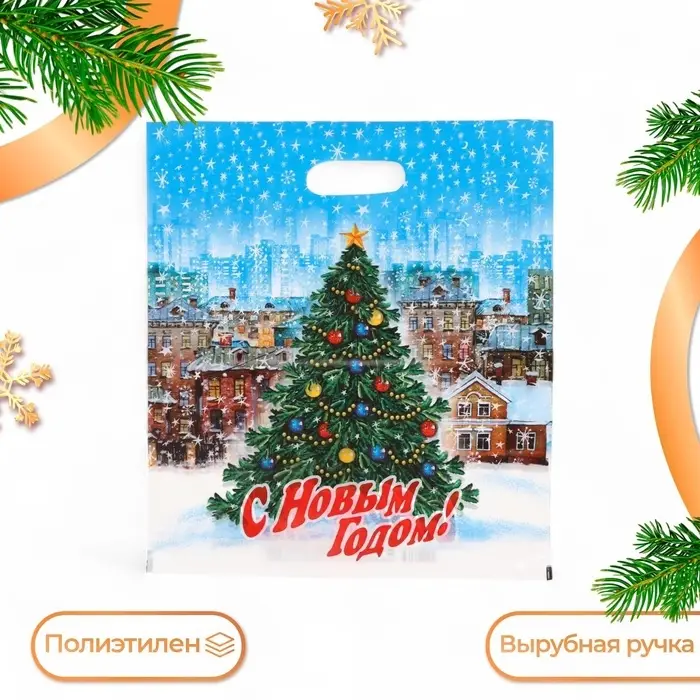 Пакет "Городская ёлка", полиэтиленовый с вырубной ручкой, 47х40 см.