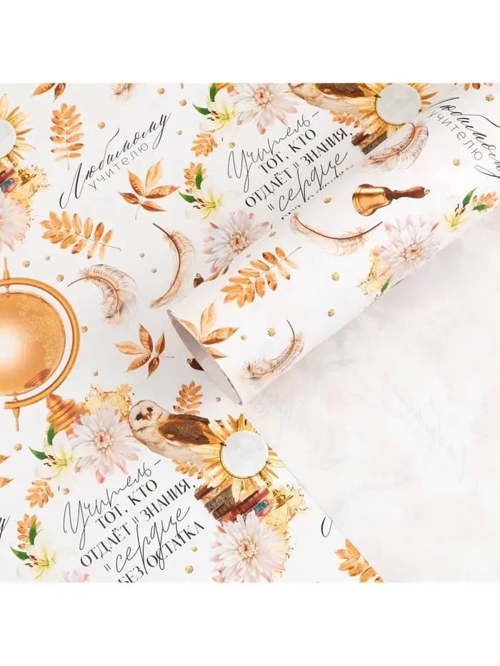 Бумага упаковочная глянцевая «Любимому учителю», 70 х 100 см