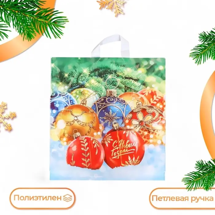 Пакет «Ёлкины подарки», полиэтиленовый с петлевой ручкой, 40×42 см