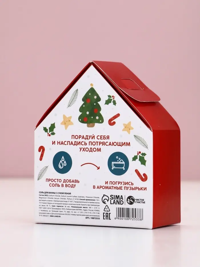 Чистое счастье соль для ванны с сухой пеной "С Новым Годом", имбирный пряник, 300 гр