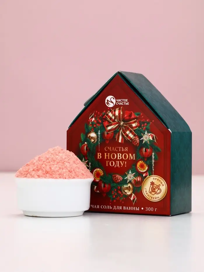 Чистое счастье соль для ванны с сухой пеной "Счастья в Новом году", пряный глинвейн,300 гр