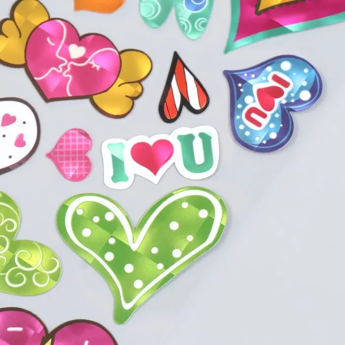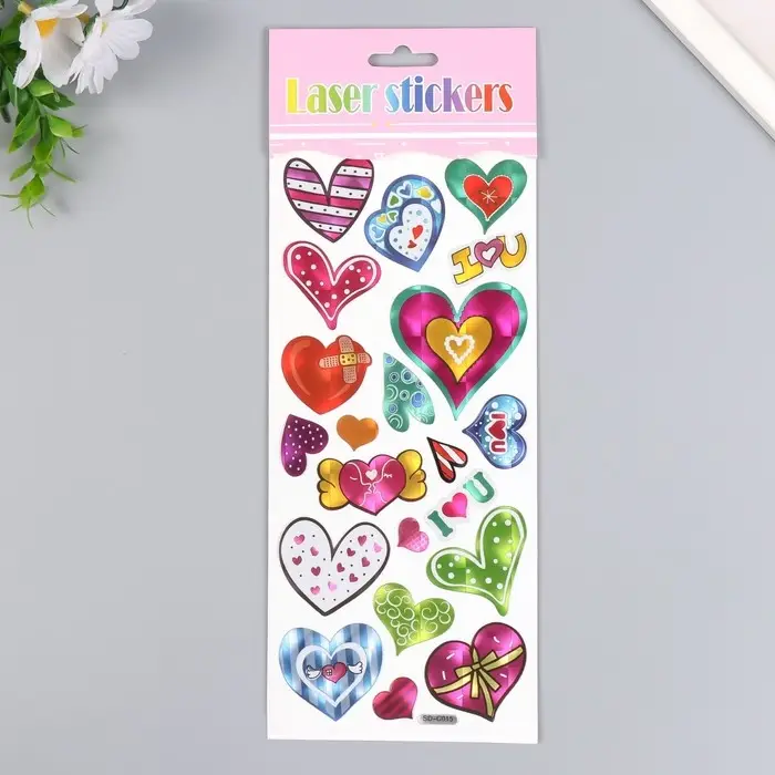 Наклейка пластик голография "Сердечки" 29х11 см