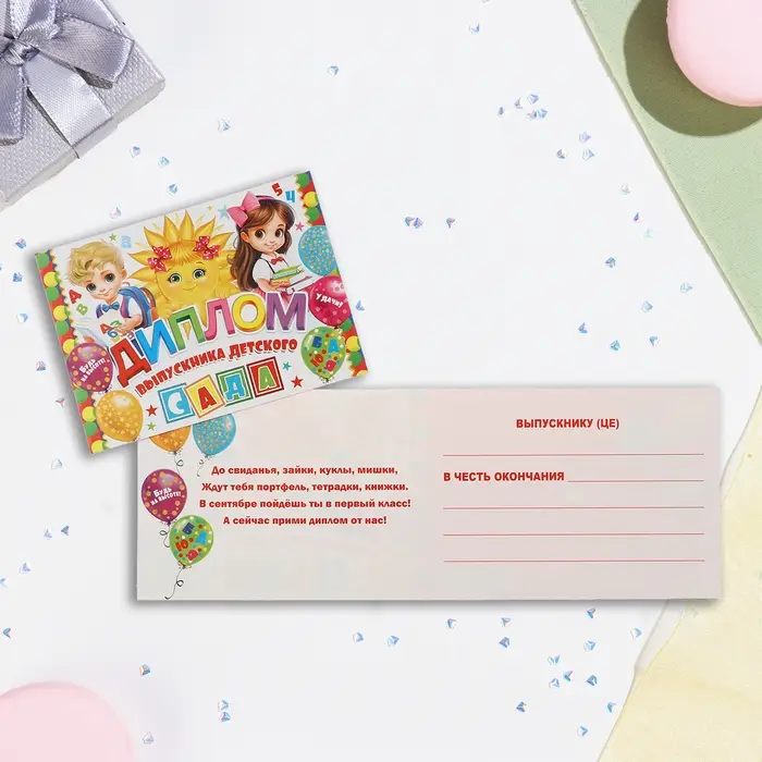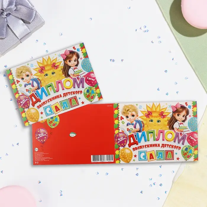 Диплом и медаль на Выпускной детского сада «Дети», 21 х 14 см, 250 гр/кв.м