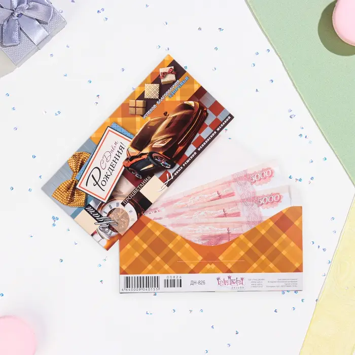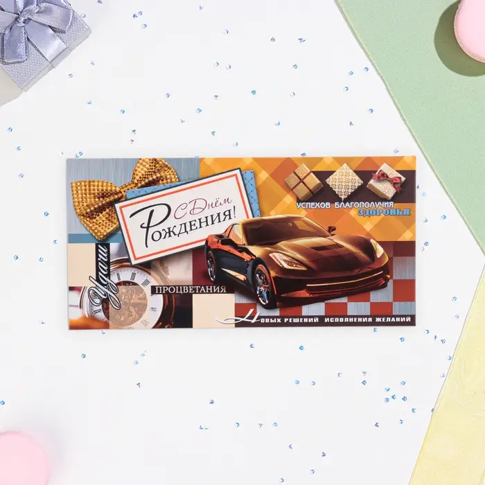 Конверт для денег "С Днём Рождения!" машина, 16,7 х 8,3 см