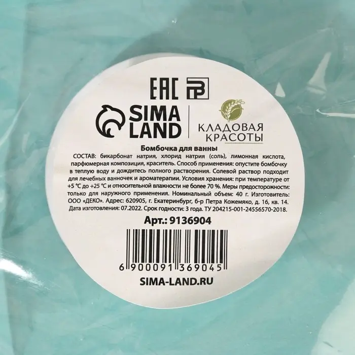 Бомбочка для ванны, 40 г, аромат морской бриз, Кладовая красоты