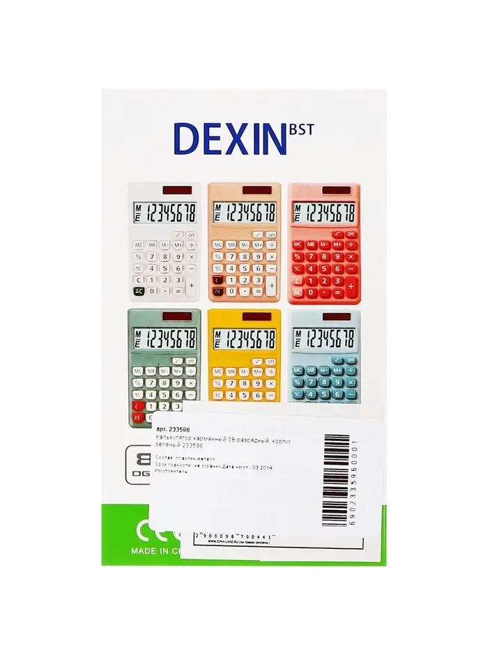 Калькулятор карманный, 08-разрядный, корпус зеленый