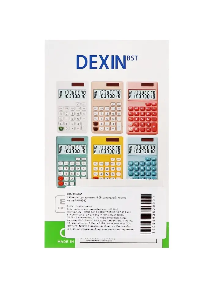 Калькулятор карманный 08-разрядный, корпус желтый