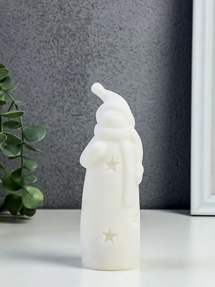 Фигурка светящаяся RISALUX «Снеговик в колпаке» LED, 3хAG10 белый 4,8х4,8х15 см
