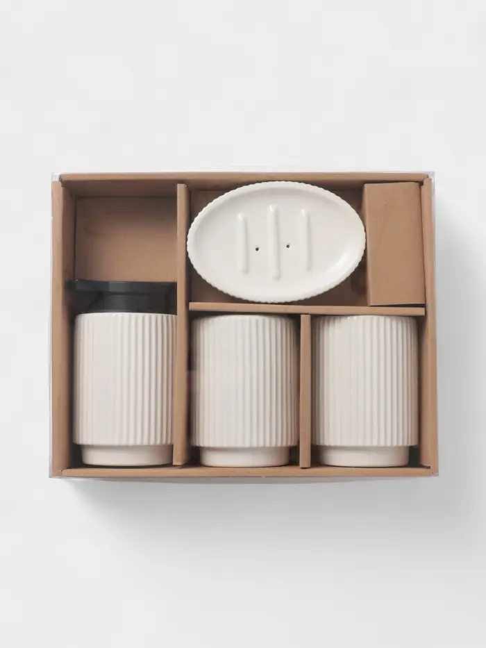 Набор аксессуаров для ванной «Грани» из 4 предметов - элегантное решение для организации пространства. Чистые линии и глянцевая поверхность создают ощущение свежести и порядка, а выразительные грани добавят изюминку в ваш интерьер.