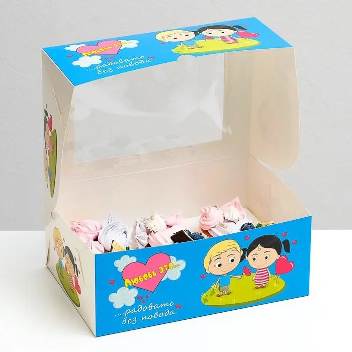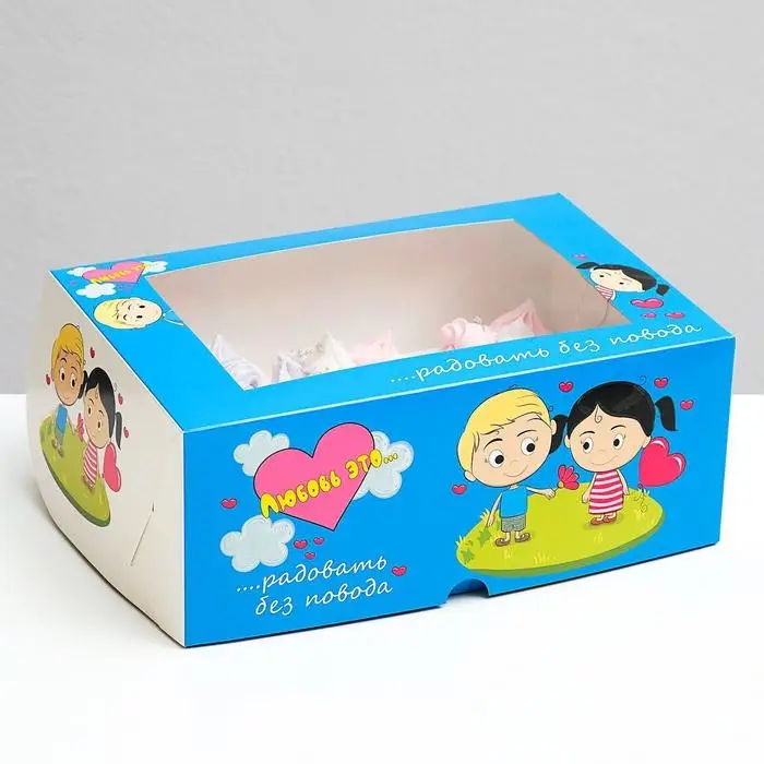 Упаковка «Любовь это…» с окном, на 6 капкейков , голубая, 25 х 17 х 10 см