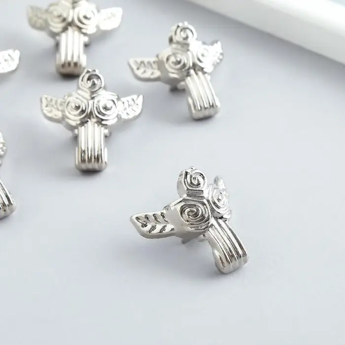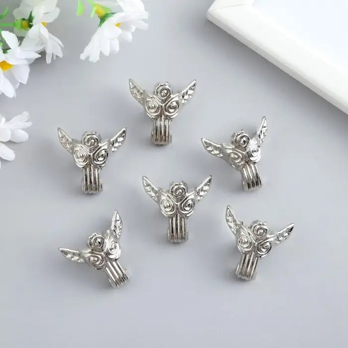 Уголок (ножка) для шкатулки металл "Розы" серебро 3х3 см