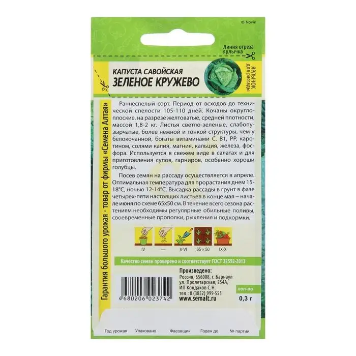 Семена Капуста савойская "Зеленое Кружево", Сем. Алт, ц/п, 0,3 г