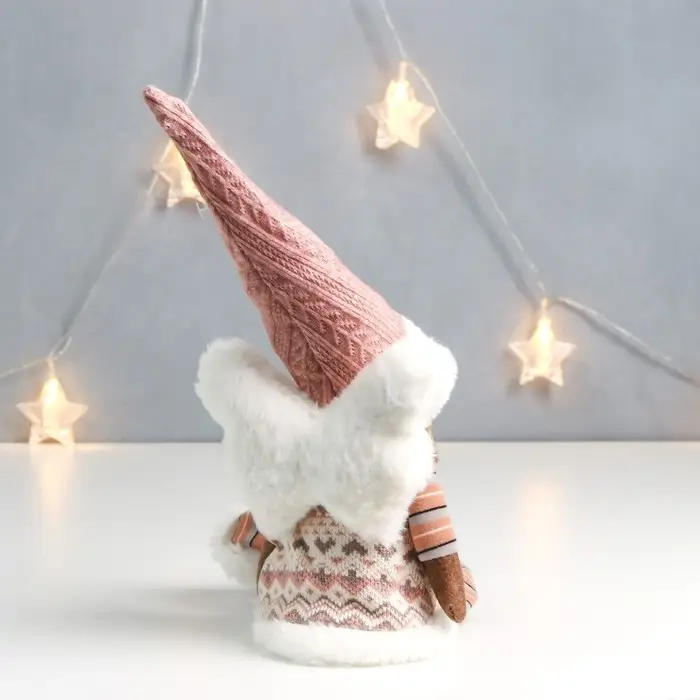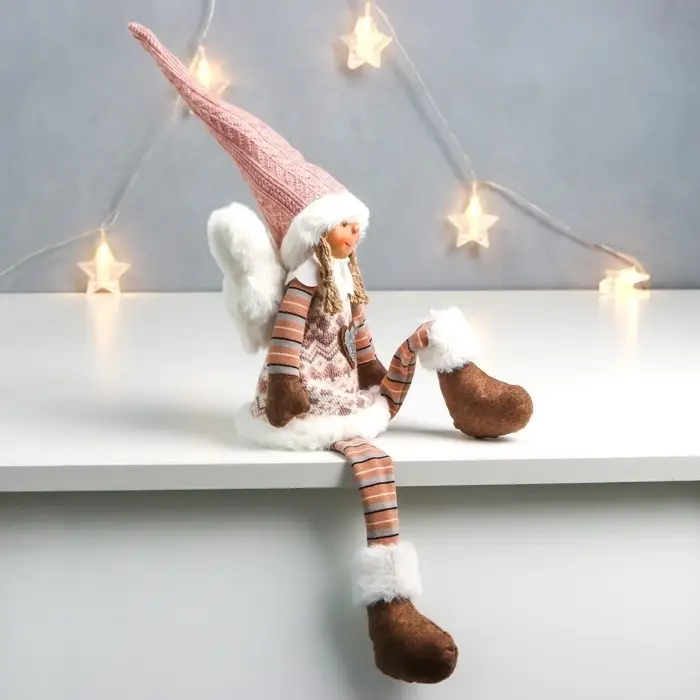 Кукла интерьерная "Ангел в бежевом наряде с узорами и сердечком" длинные ножки 50х13х9 см