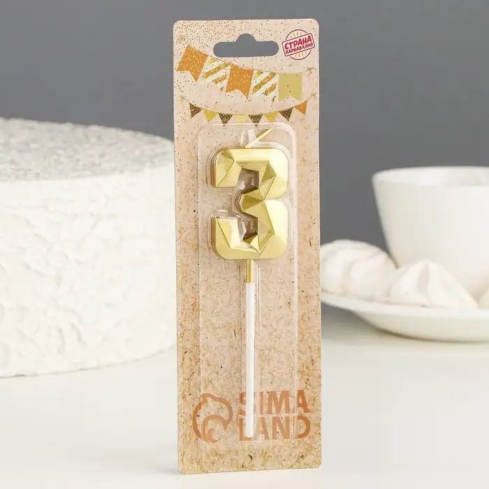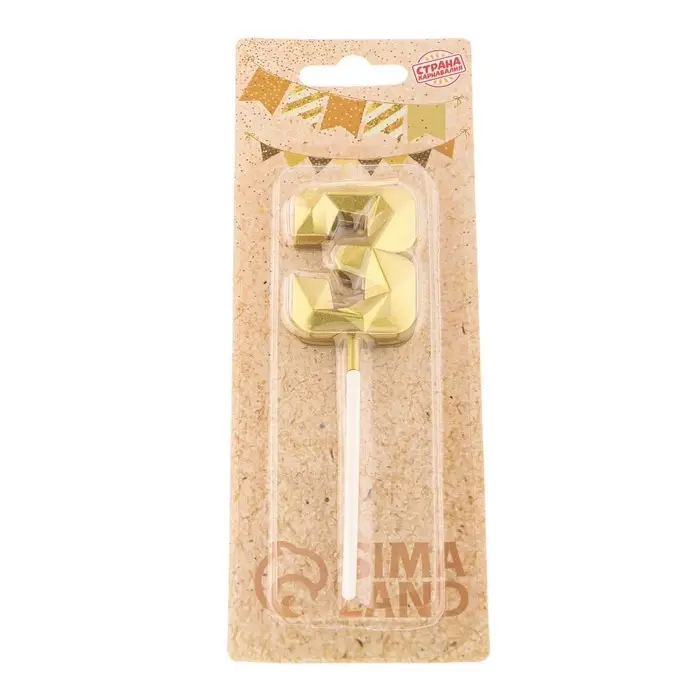 Свеча в торт на шпажке «Алмаз», цифра 3, золотая, 5 см