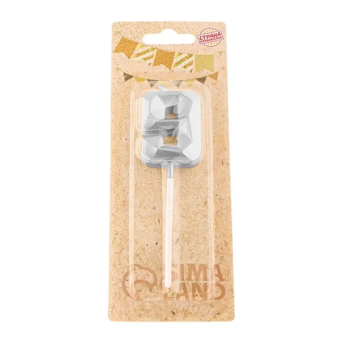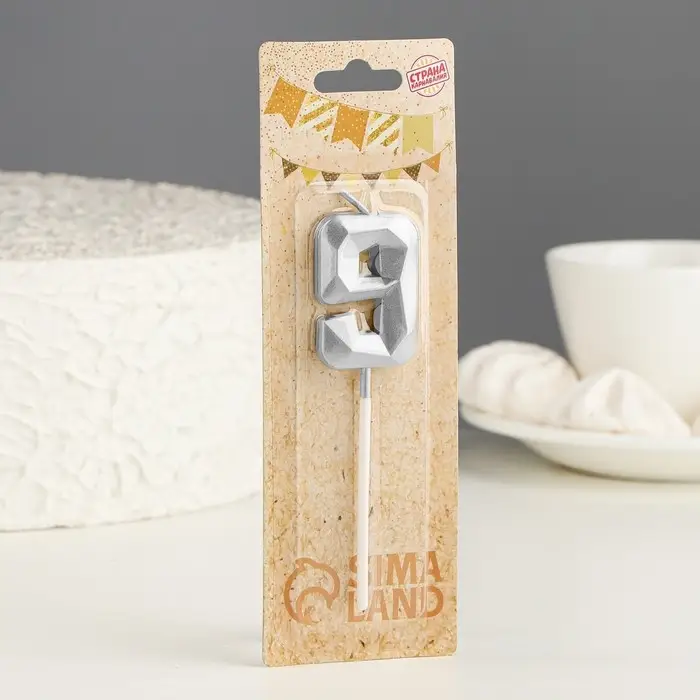 Свеча в торт на шпажке «Алмаз», цифра 9, серебряная, 5×2.6 см