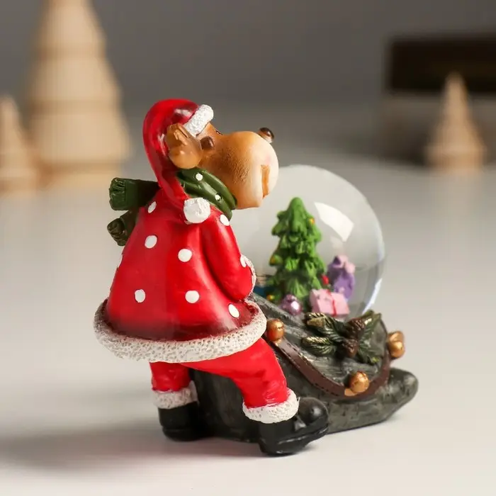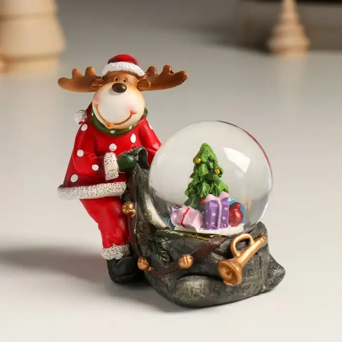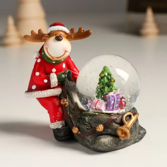 Сувенир полистоун водяной шар "Лосик с мешком подарков" 10,5х6х8,5 см