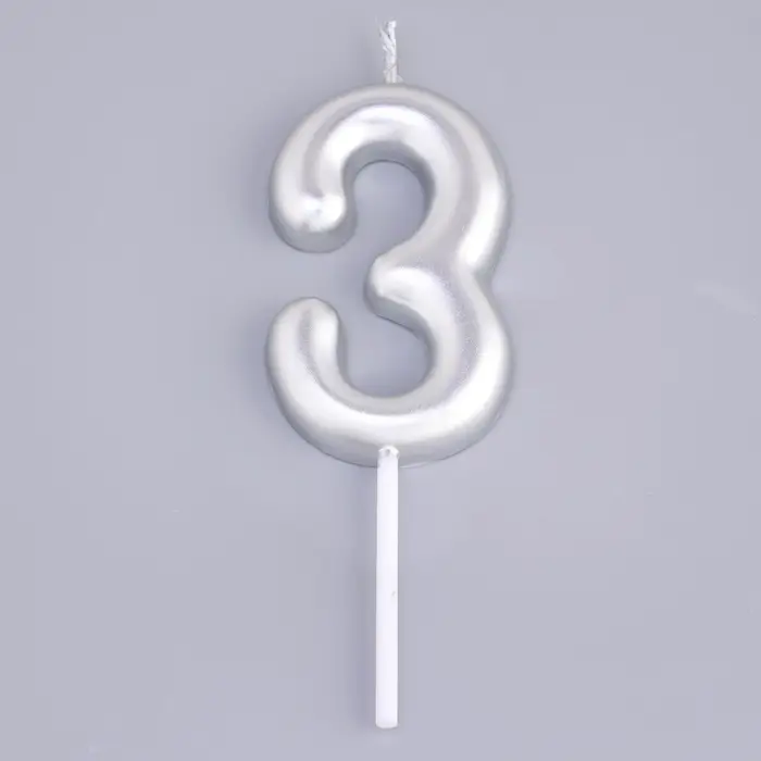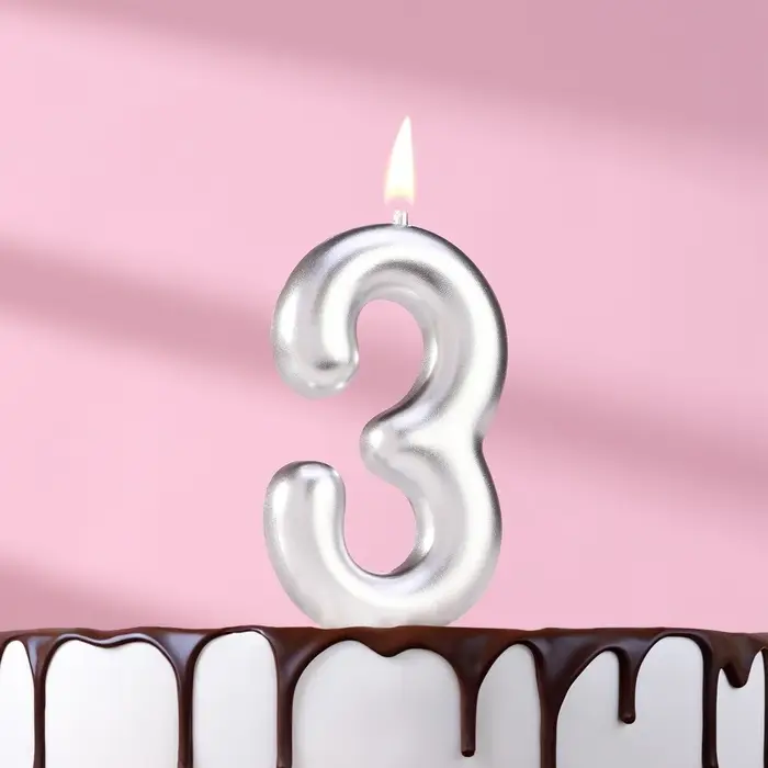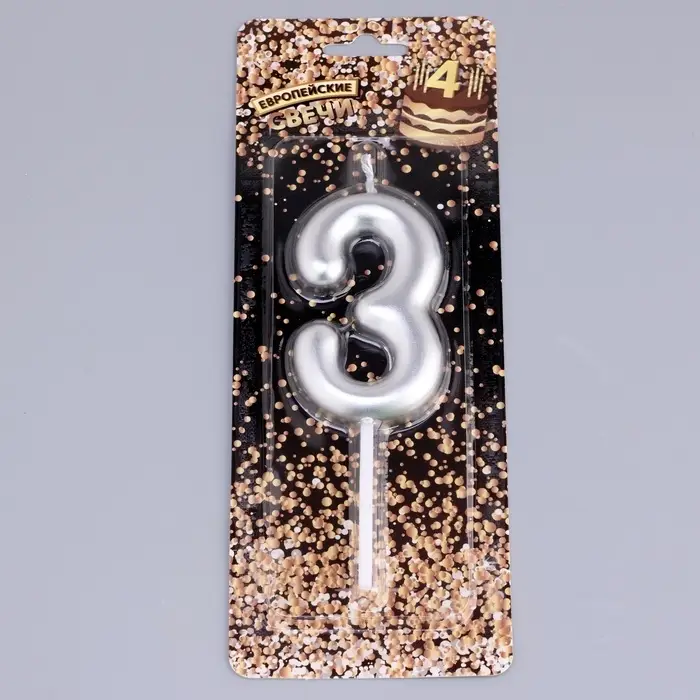 Свеча в торт «Европейская», цифра 3, 6 см, серебро
