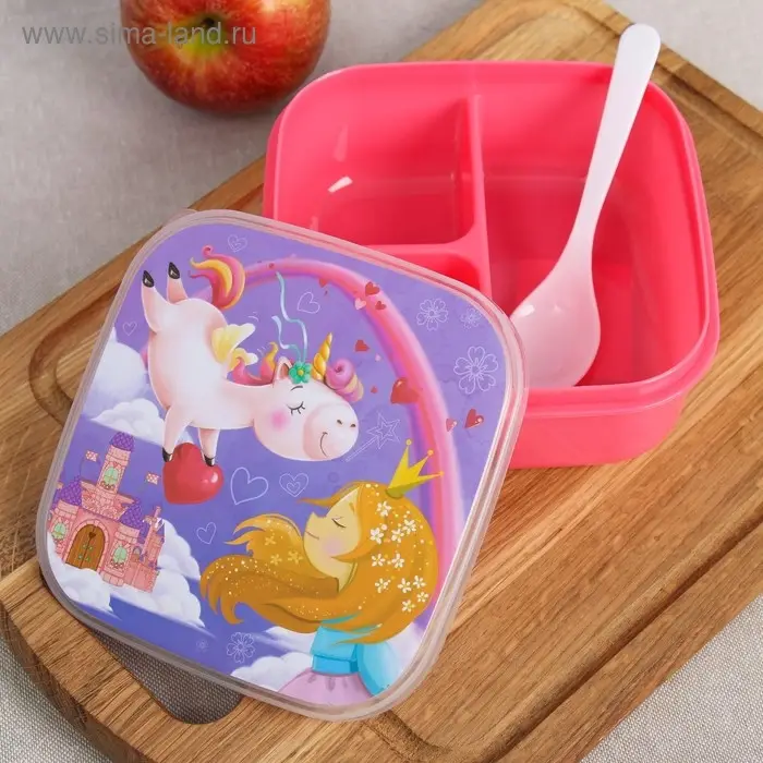 Ланч - бокс квадратный с секциями и ложкой «Единорог», 400 мл