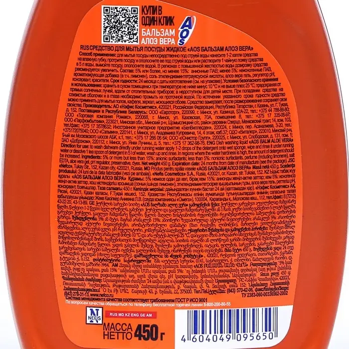 Средство для мытья посуды Aos "Алоэ Вера", 450 мл