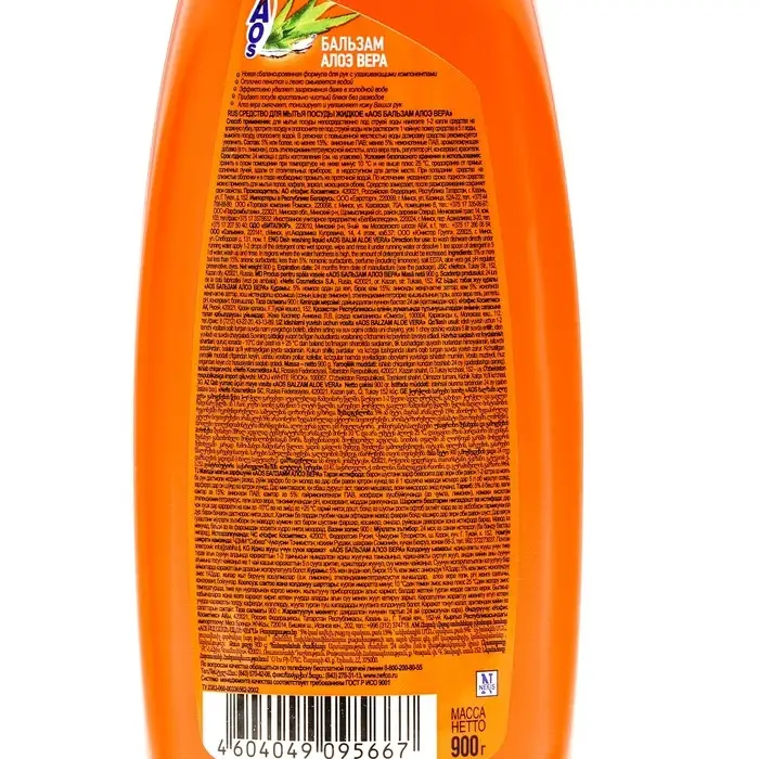 Средство для мытья посуды Aos "Алоэ Вера", 900 мл