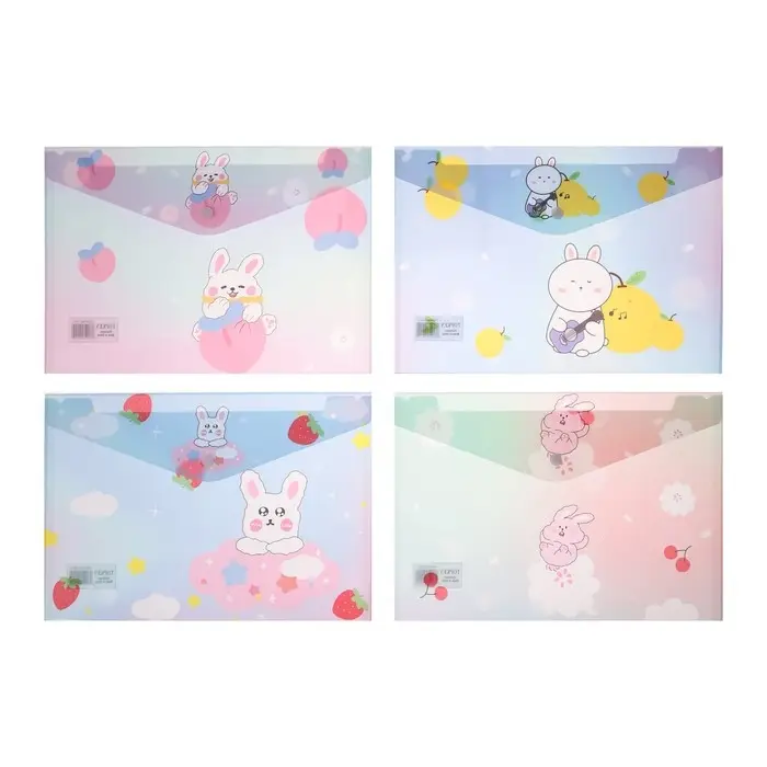 Папка-конверт на кнопке, А4, 150 мкм, "Зверушки", МИКС