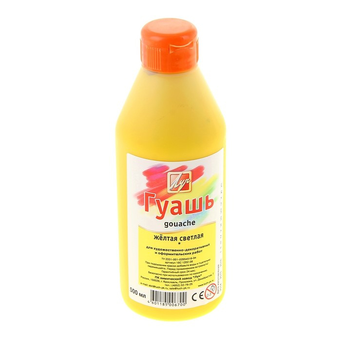 Гуашь "Луч", 500 мл, жёлтая светлая