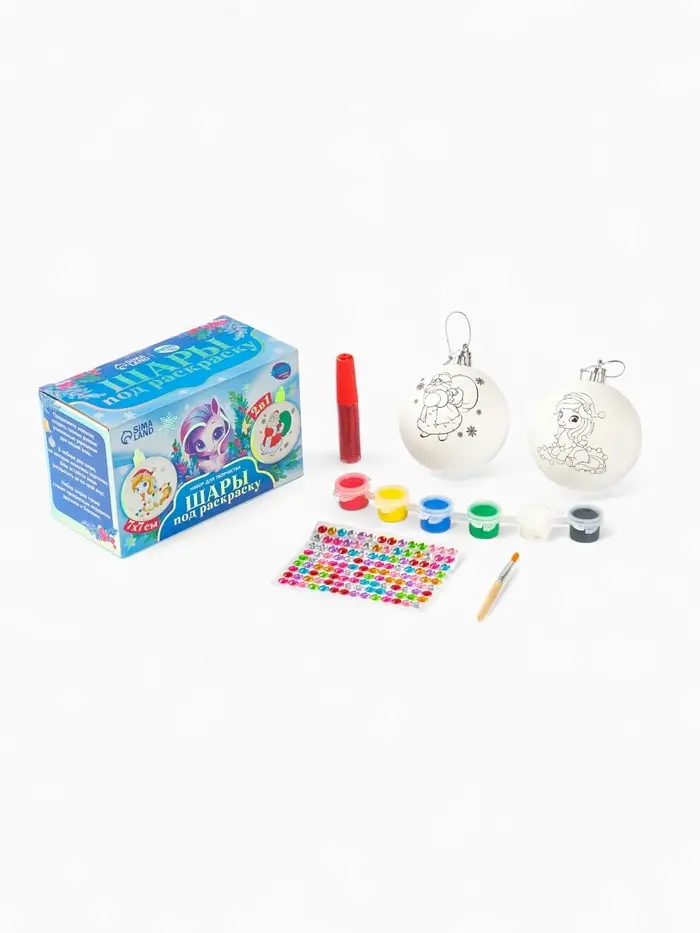 Набор для творчества «Елочные шары под раскраску »Исполнения желаний« + краски,7 см, 2 шт.